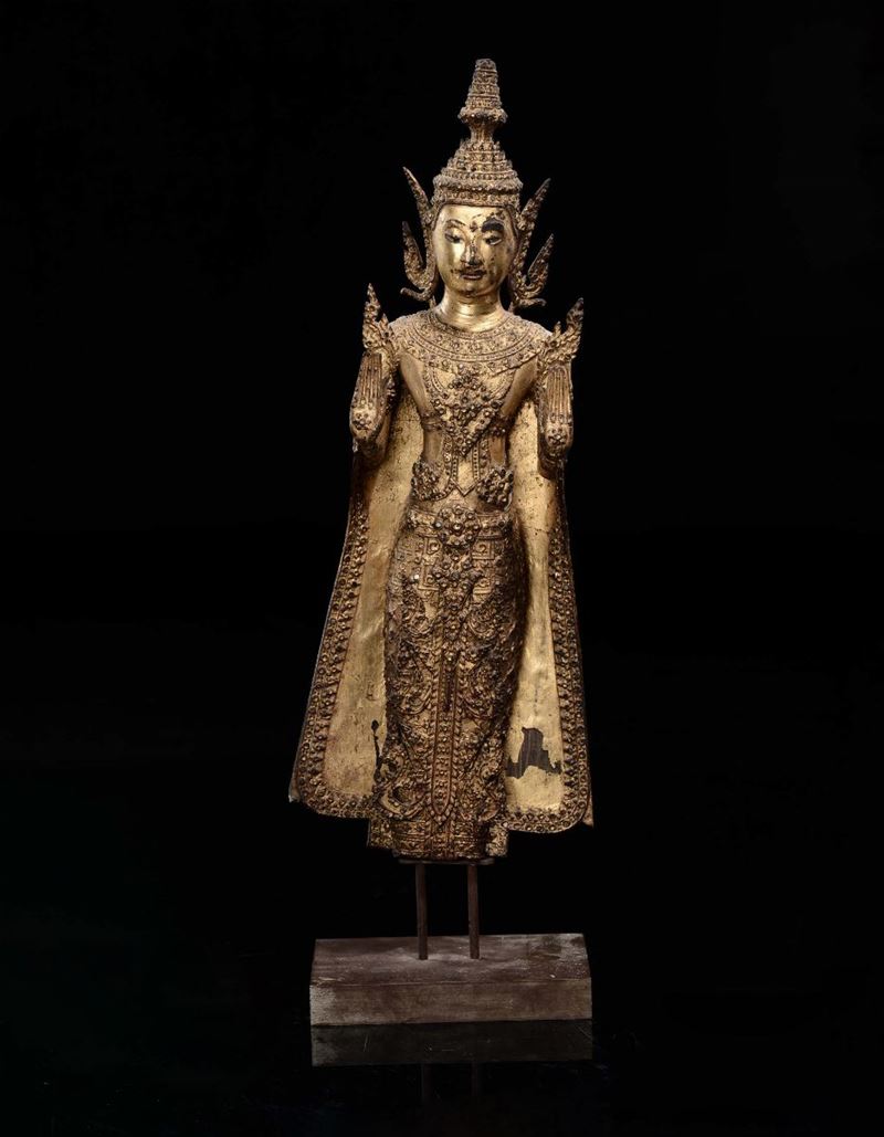 Divinità su piedistallo in bronzo dorato, Thailandia, XIX secolo