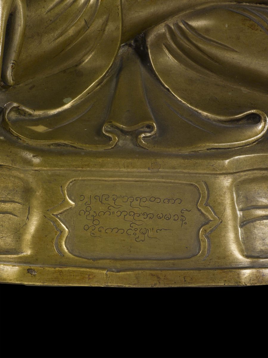 Figura di Buddha in bronzo dorato con occhi in vetro smaltato, Thailandia, XVIII secolo