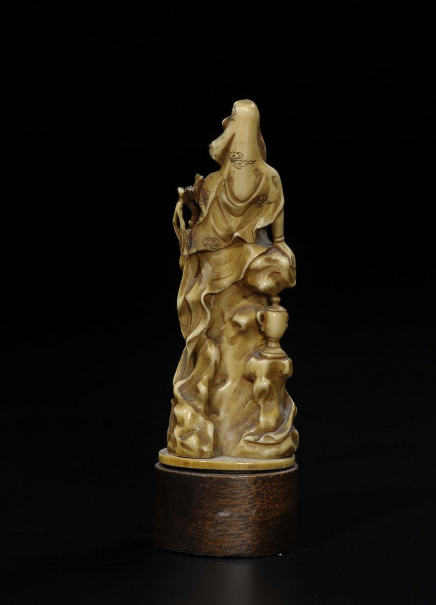 Gruppo in avorio con Guanyin seduta e fanciullo con vasi in mano, Cina, Dinastia Qing, fine XIX secolo