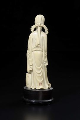 Gruppo in avorio raffigurante Guanyin seduta e dignitario eretto che le posa una mano sulla spalla, Cina, Repubblica, inizio [..]