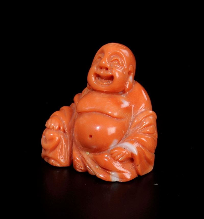Piccola figura di Budai scolpita in corallo, Cina, inizio XX secolo