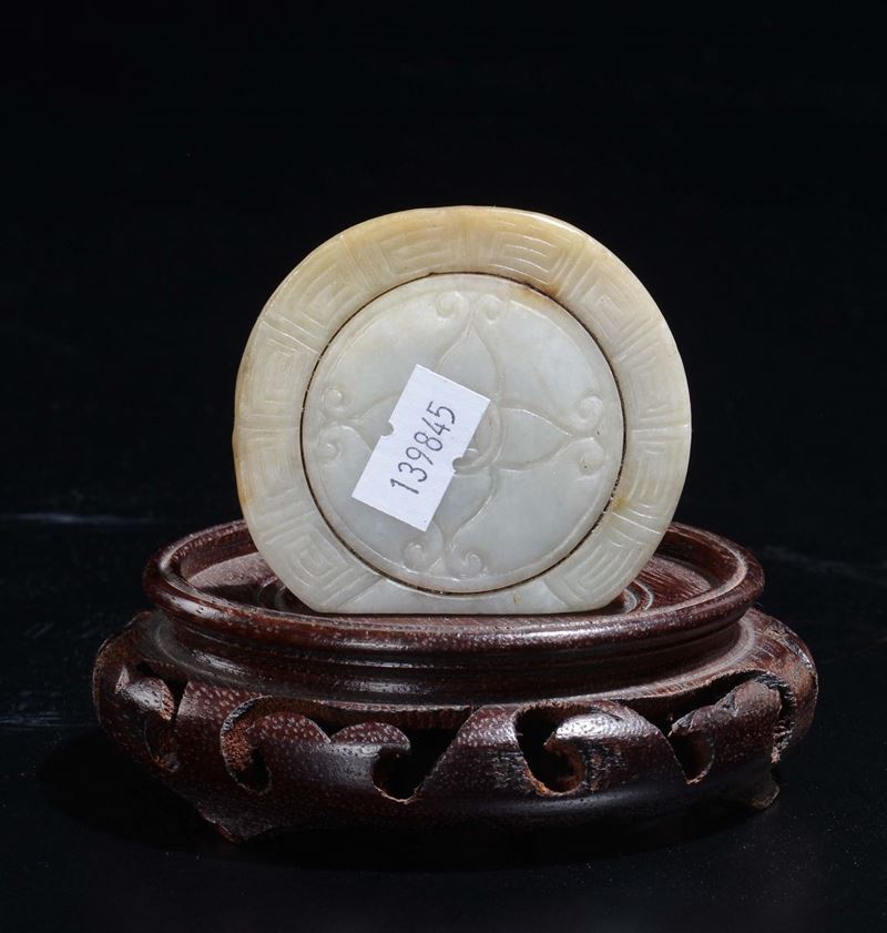 Piccolo Budai inciso in giada bianca e russet, Cina, XX secolo