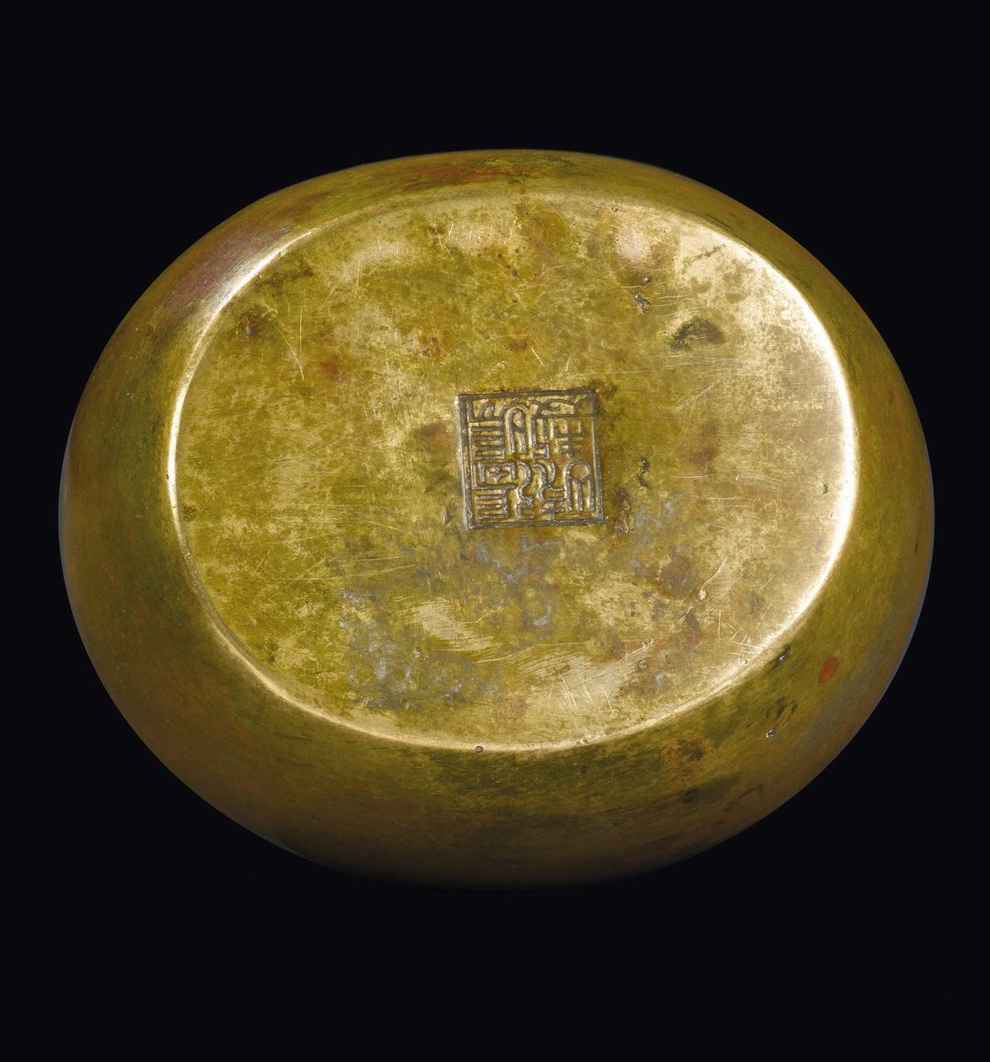 Piccolo scaldamani in bronzo dorato con coperchio in rame, Cina, Dinastia Qing, XIX secolo