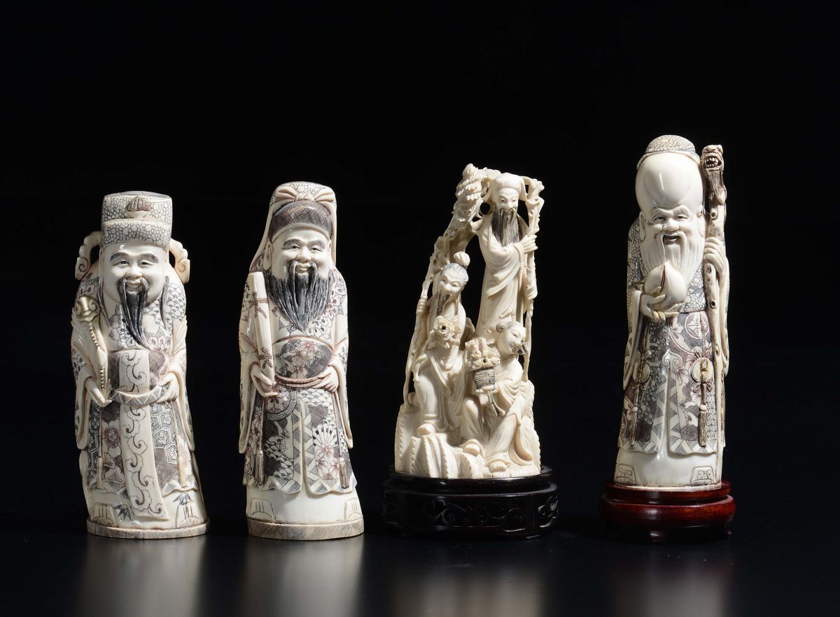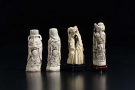 Quattro sculture in avorio raffiguranti saggi e dignitari, Cina, inizio XX secolo