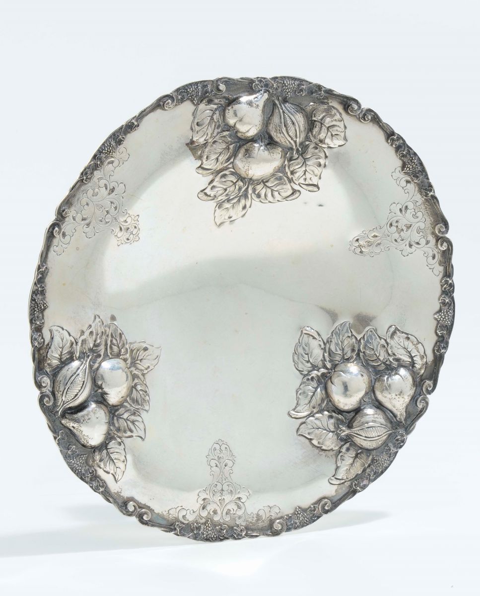 Alzata in argento sbalzato