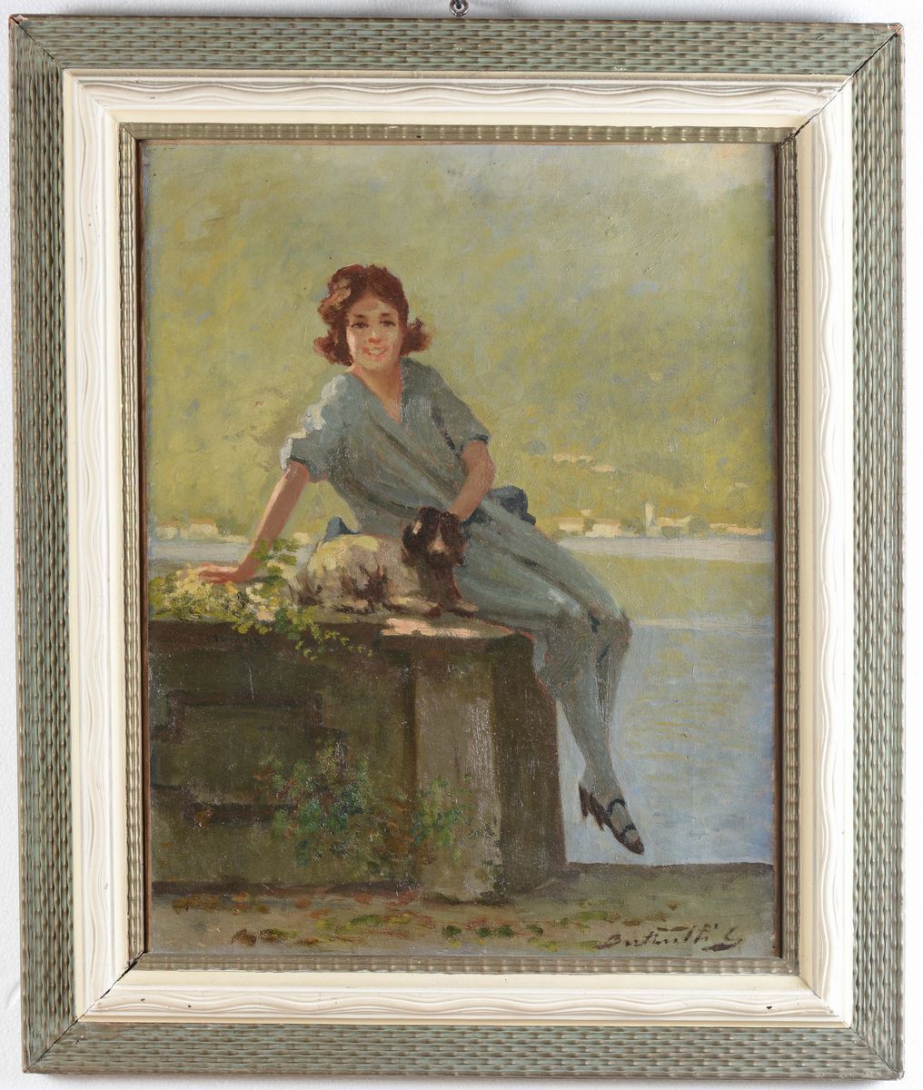 Anonimo del XIX secolo Figura femminile con cagnolino