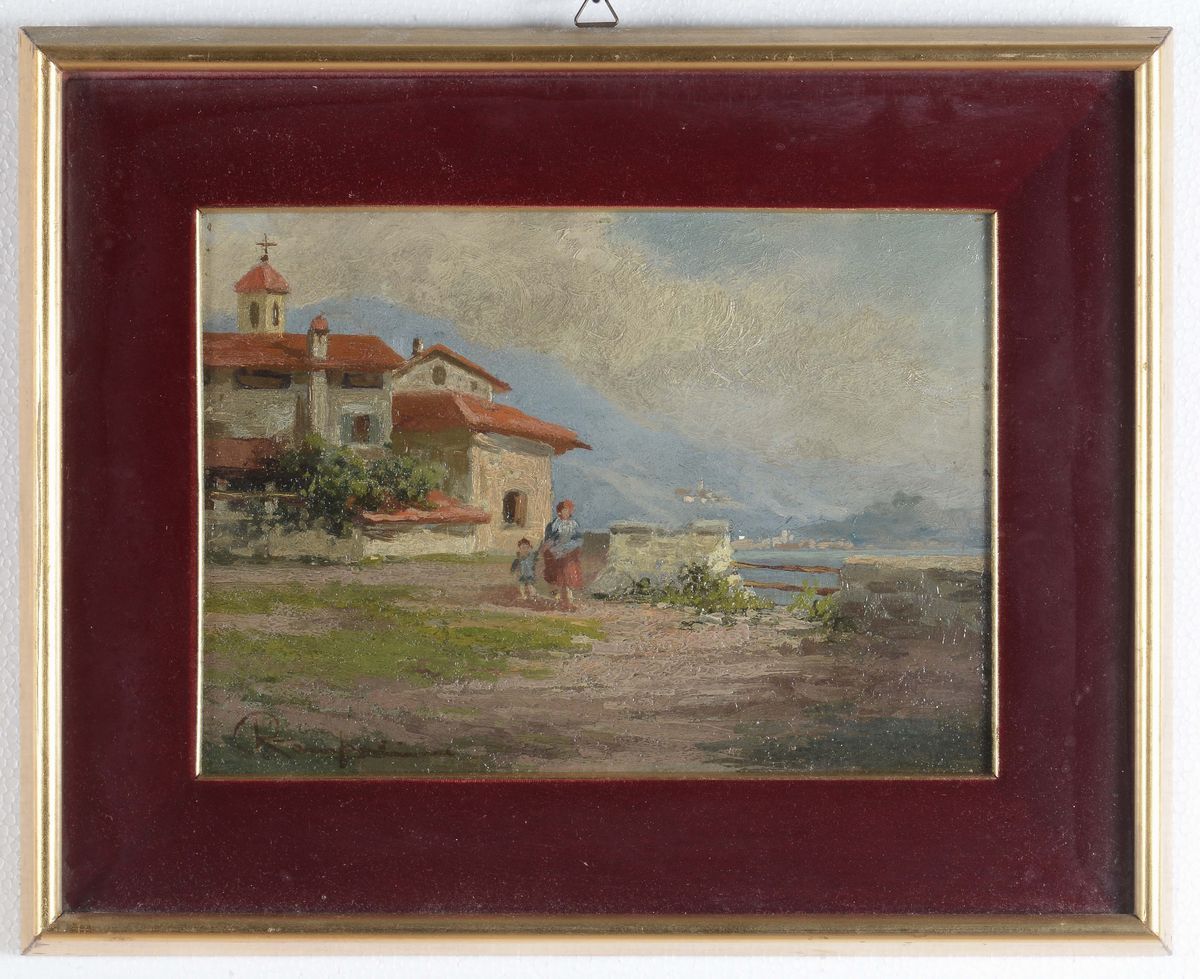 Anonimo del XIX-XX secolo Paesaggio con bimbi ed architetture