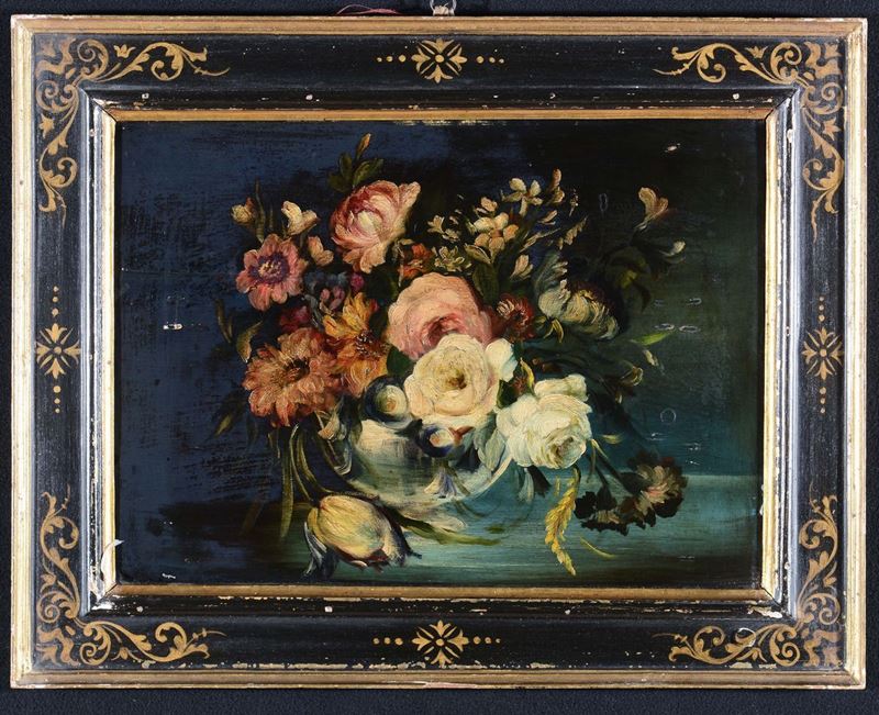 Anonimo del XX secolo Coppia di dipinti con fiori