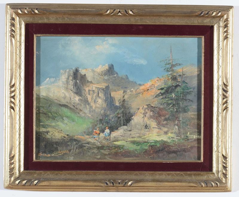 Anonimo del XX secolo Coppia di paesaggio montani