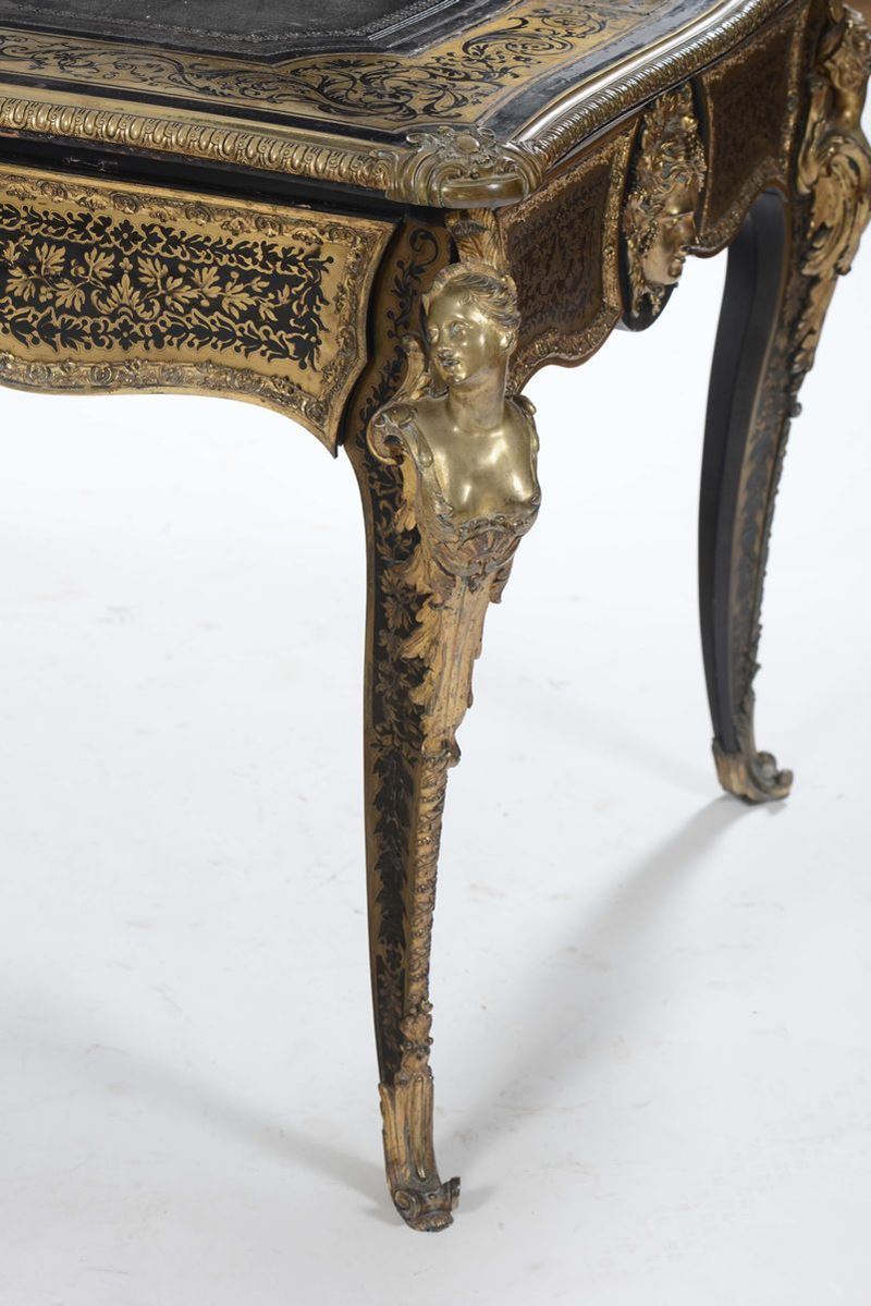 Bureau-plat Boulle in legno ebanizzato e bronzi dorati, Francia XIX secolo