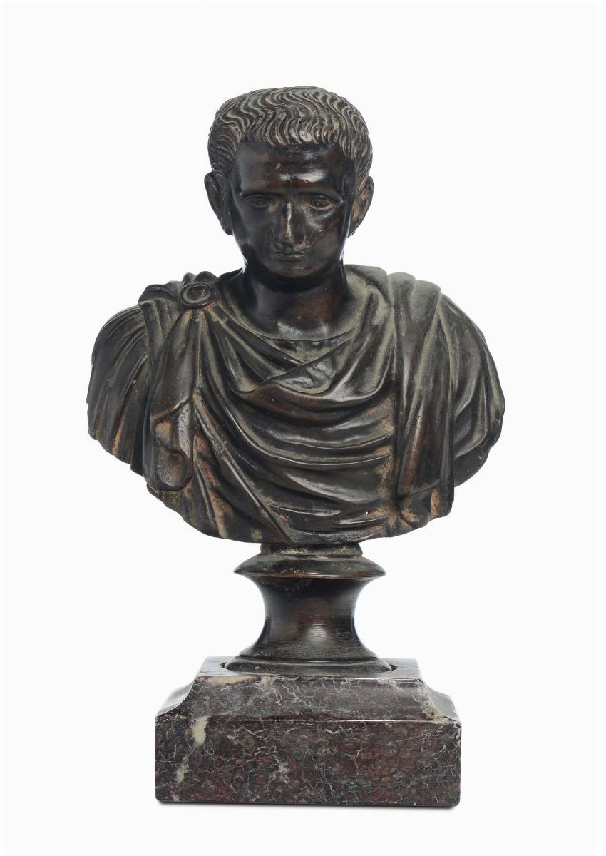 Busto di imperatore in bronzo su base in marmo rosso