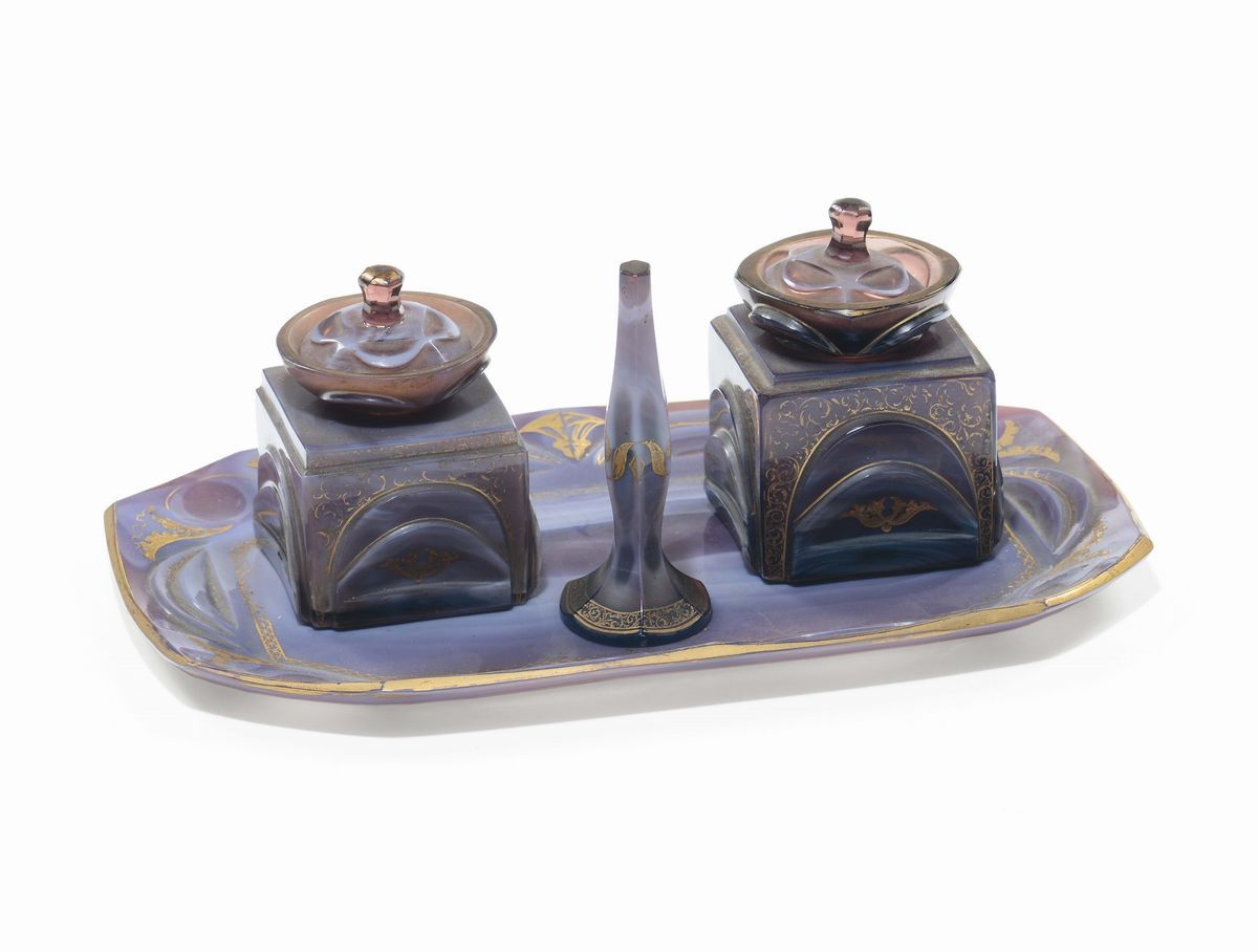 Calamaio in vetro opaline viola, XIX-XX secolo