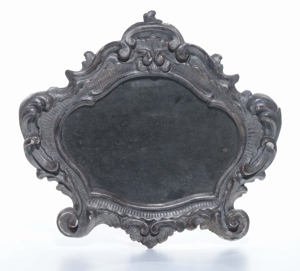 Cartagloria in legno intagliato e argentato con specchio al mercurio, XIX secolo