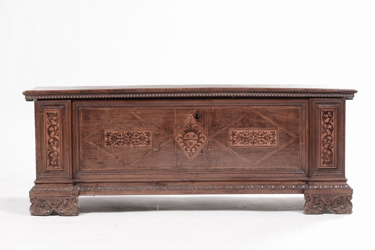 Cassapanca in noce e radica di noce, XIX secolo