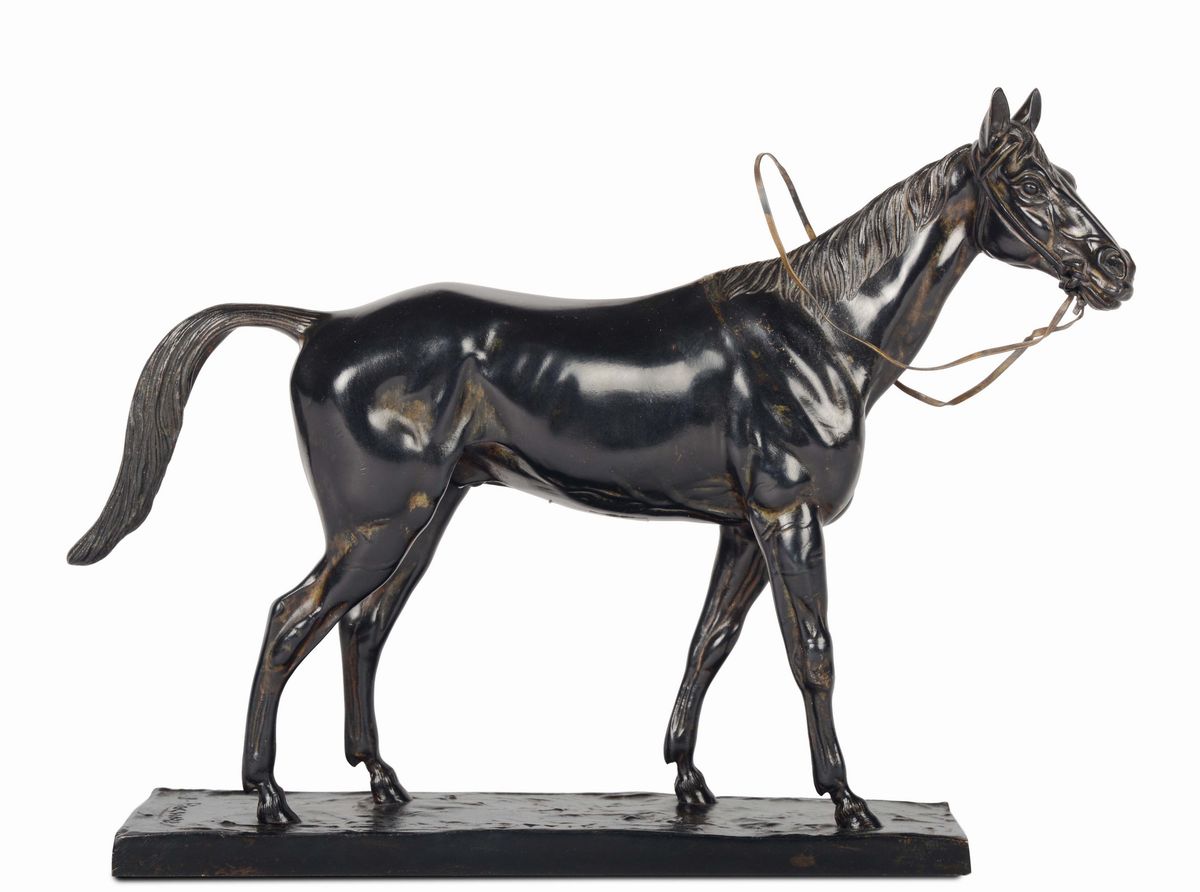 Cavallo da corsa in bronzo, Rochard, Francia XIX-XX secolo