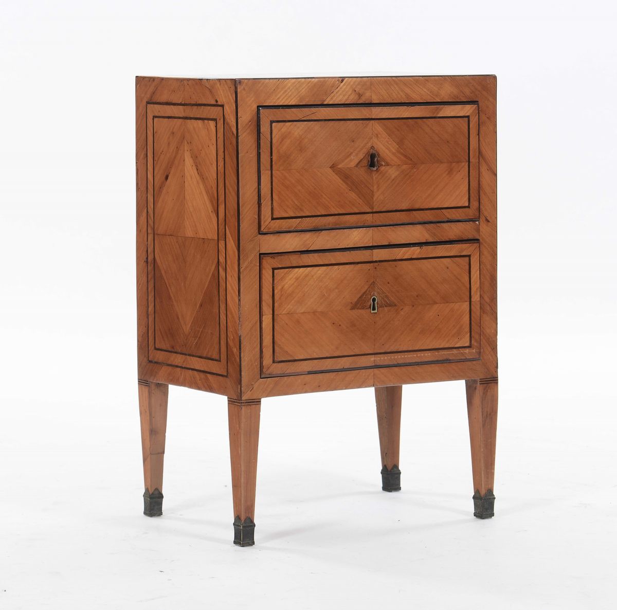 Comodino lastronato a due cassetti, XIX secolo