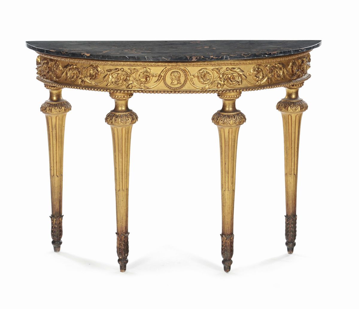 Console Luigi XVI demilume in legno intagliato e dorato, XVIII secolo