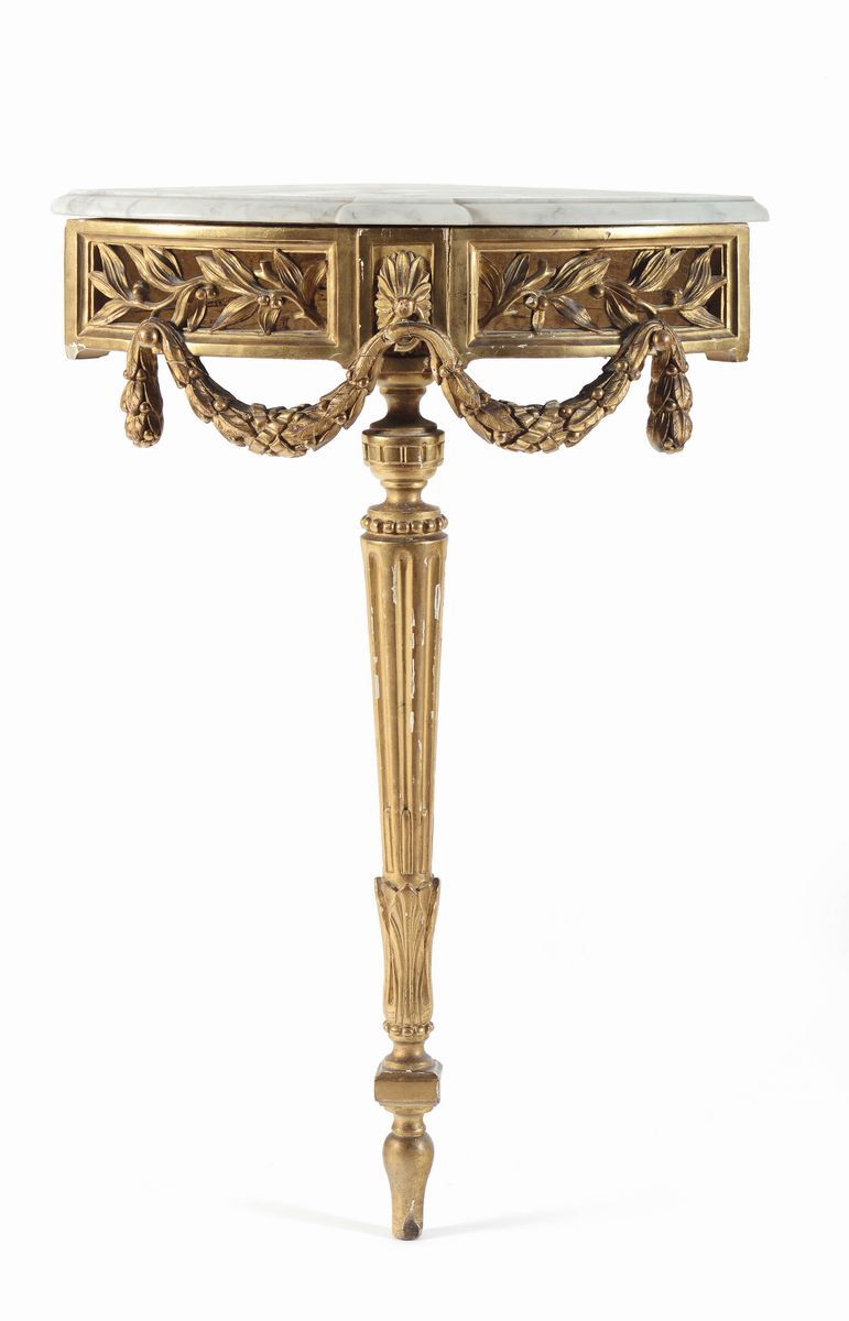 Coppia di angoliere in legno intagliato e dorato, XIX secolo