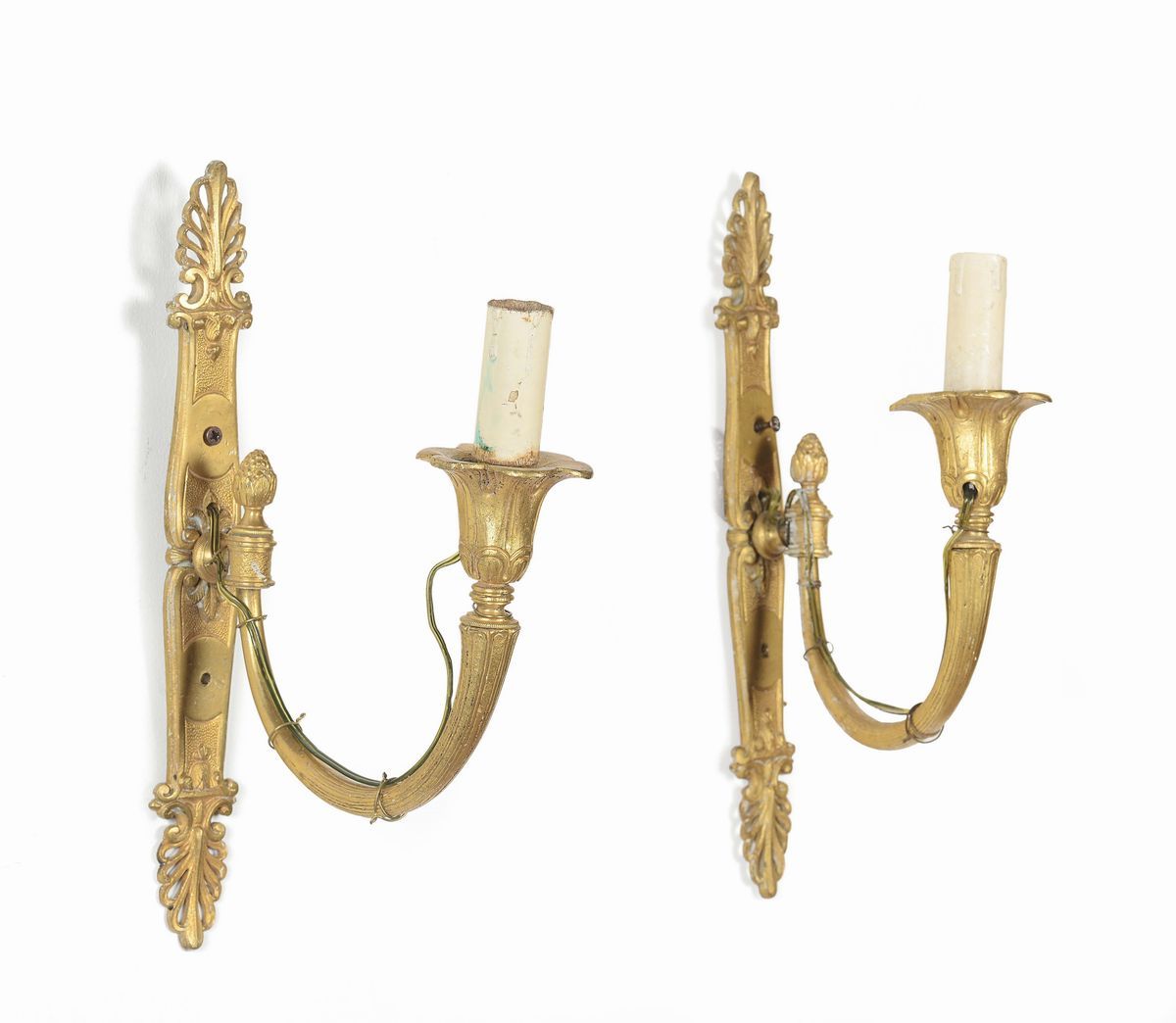 Coppia di appliques in bronzo dorato a una luce, XIX secolo