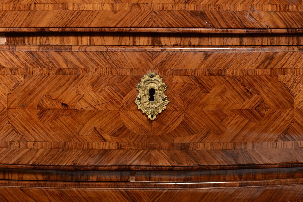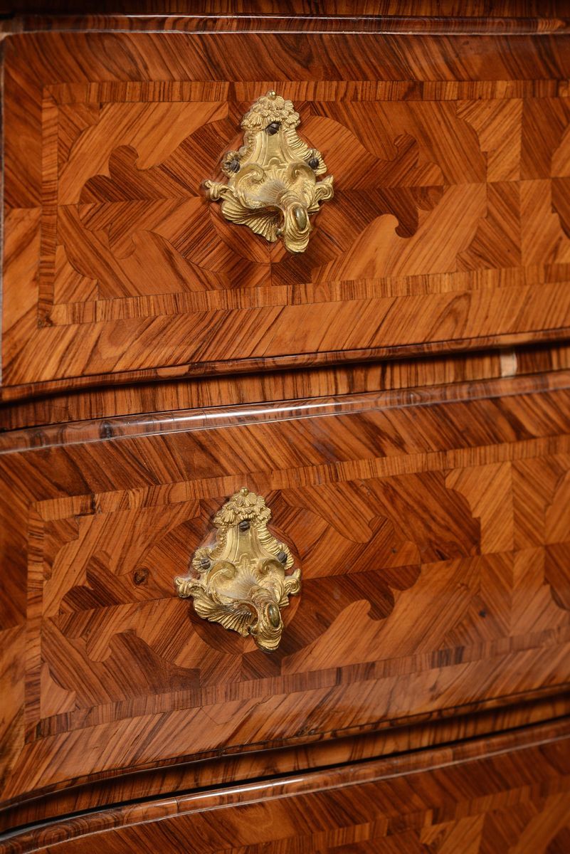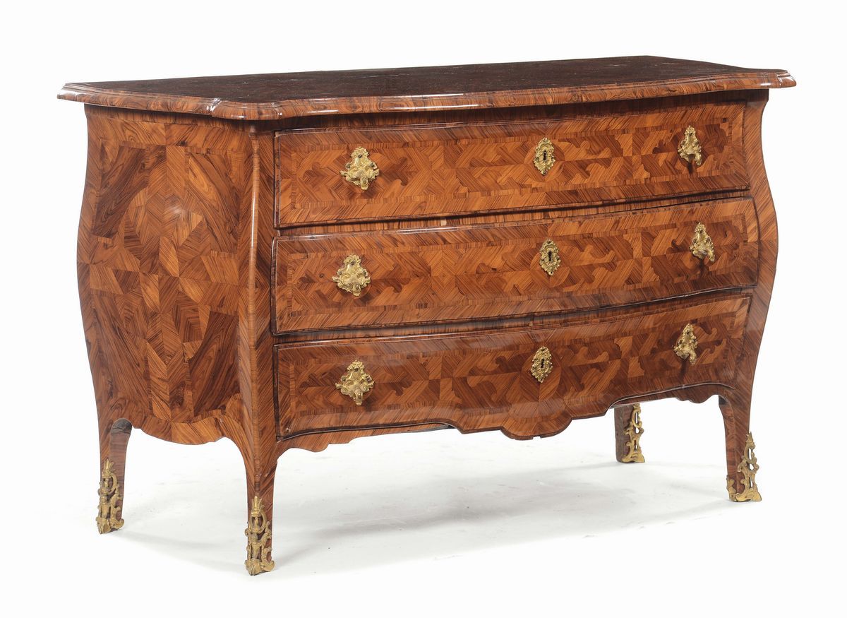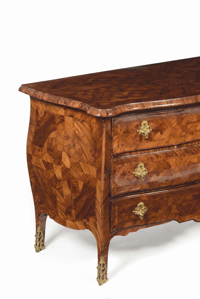 fronte e fianchi mossi, maniglie, boccachiavi e scarpette in bronzo dorato, cm 135x60x82
