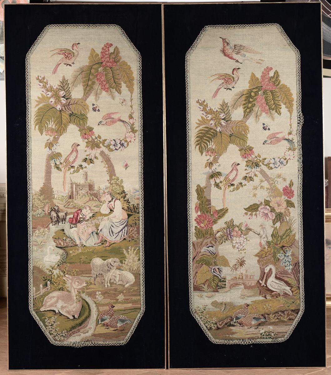 Coppia di pannelli ricamati