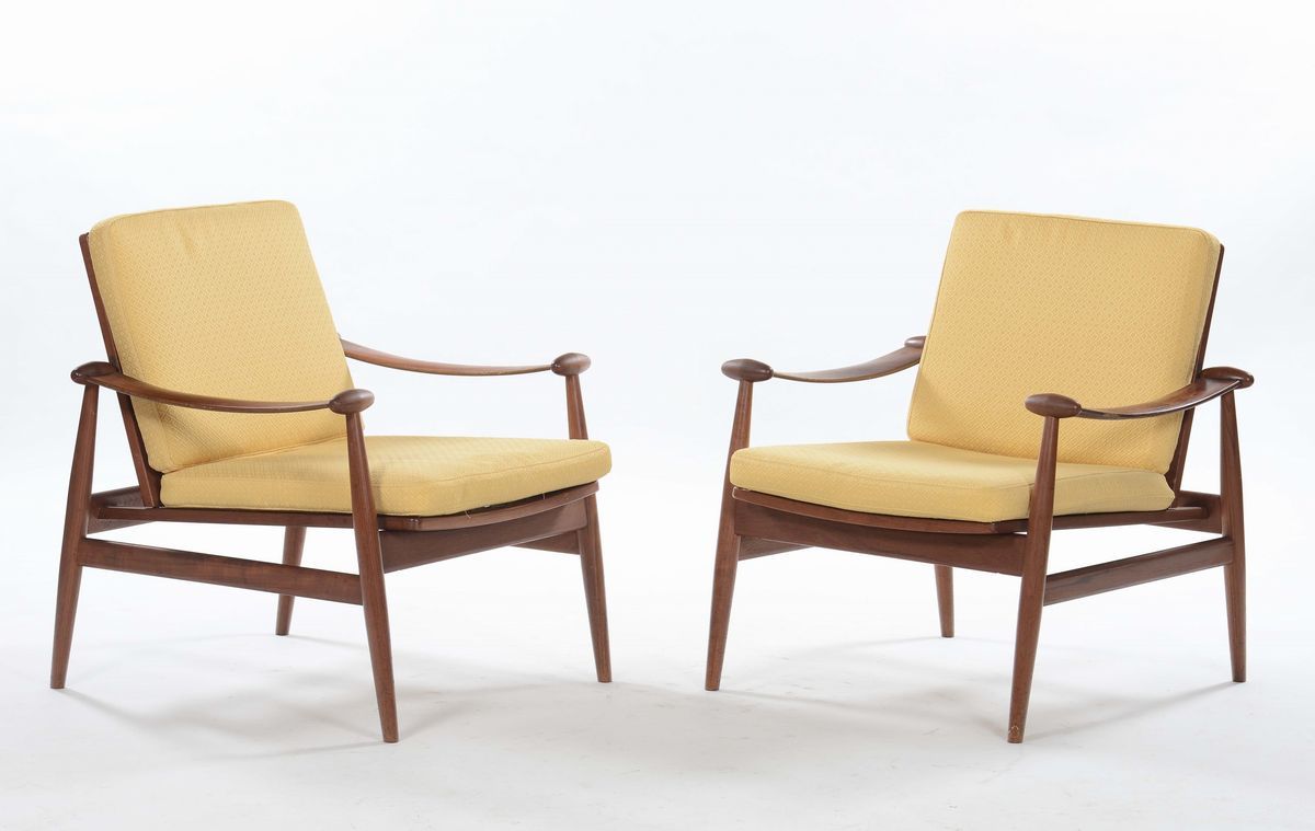 Coppia di poltrone con seduta imbottita gialla, Danimarca