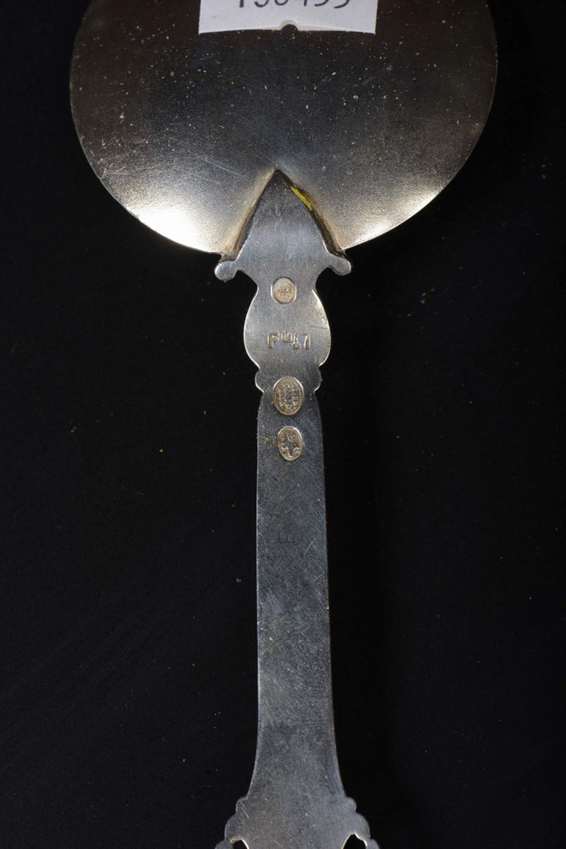 Cucchiaio spargizucchero in argento, argentiere AM, Copenaghen 1854