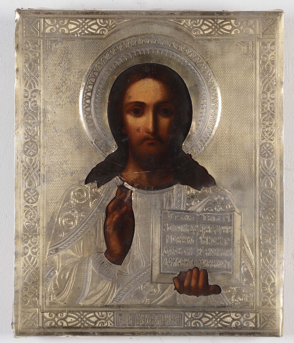 Icona raffigurante Cristo pantocratore, con lamina in argento, punzone 1889