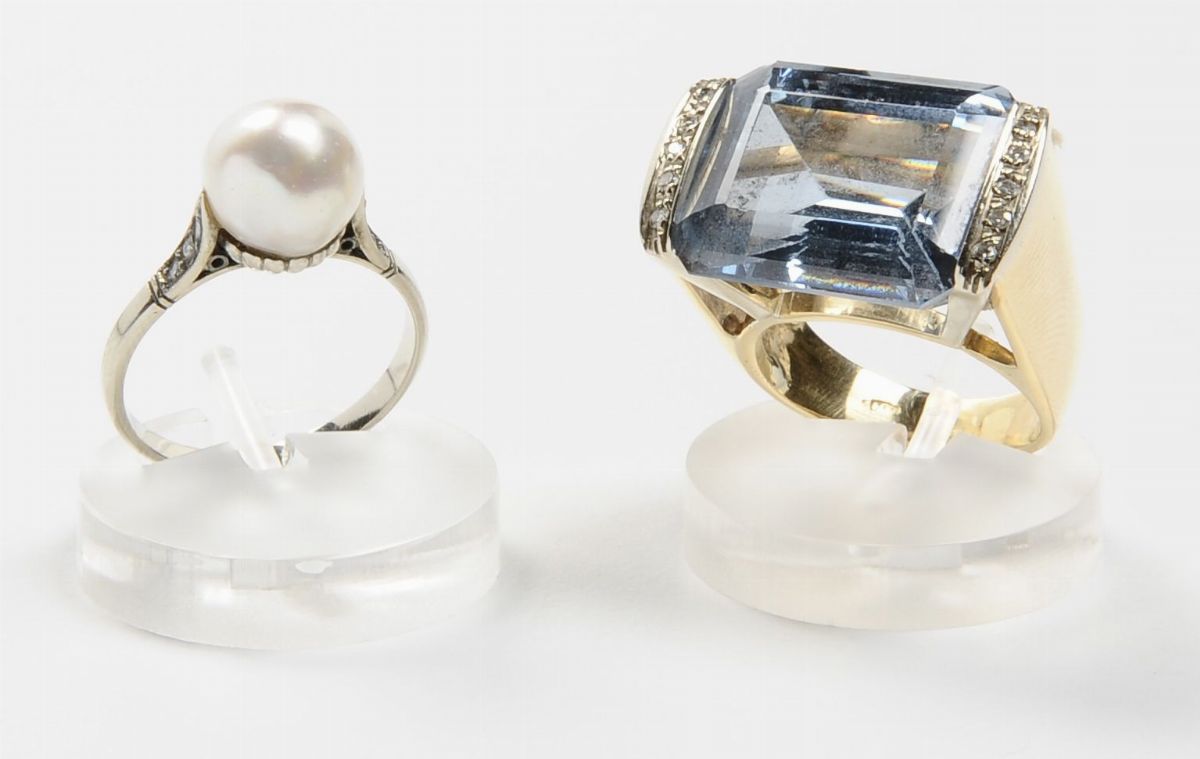 Lotto composto da anello con spinello sintetico ed anello con perla coltivata