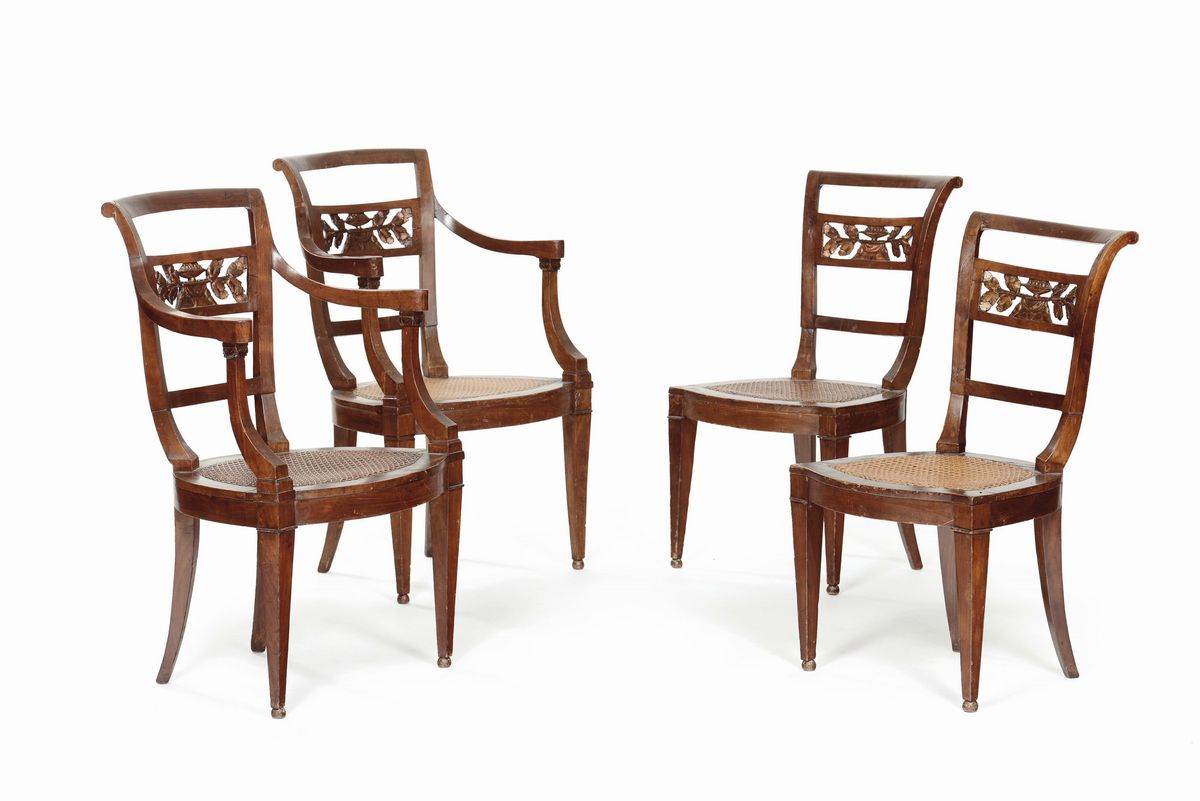 Lotto composto da due poltrone e due sedie Direttorio, Genova XIX secolo