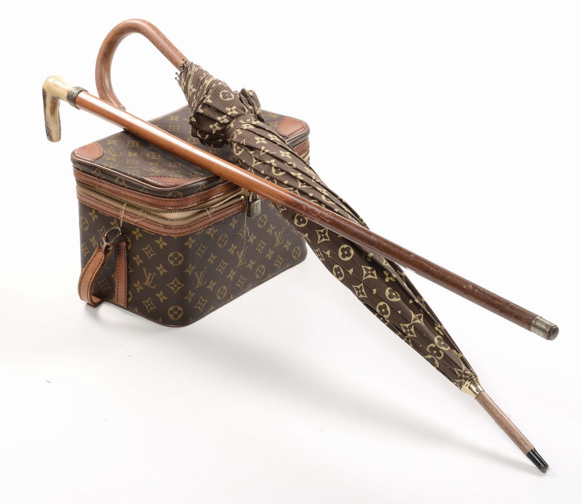 Lotto composto da ombrello Louis Vouitton e bastone da passaggio con manico in osso