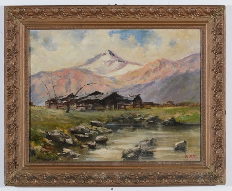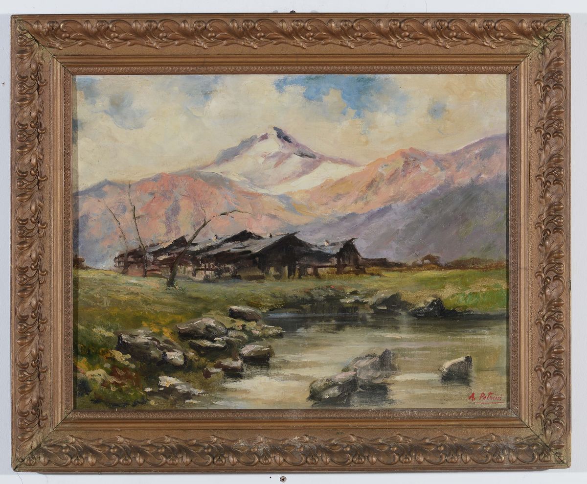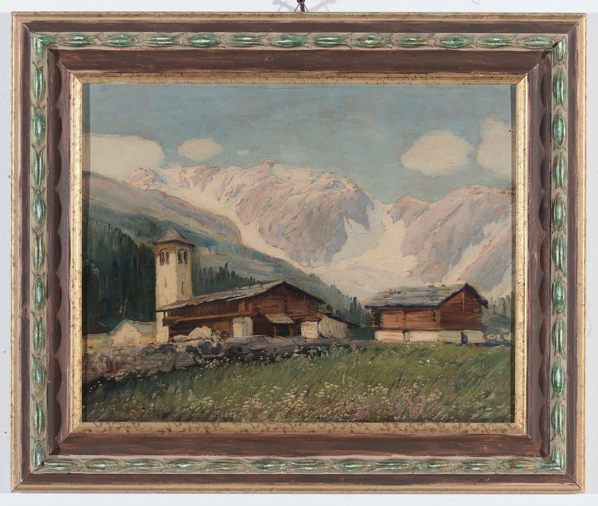 Chiesa di Pecetto, olio su compensato, cm 38x47 Petrini, Baite in montagna, olio su tela applicata, cm 50x65