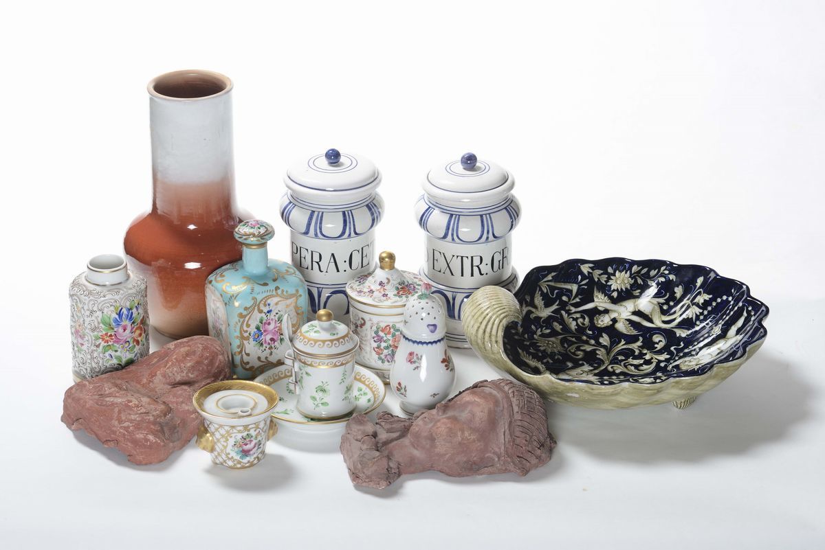 Lotto di oggetti in porcellana, terracotta e altro