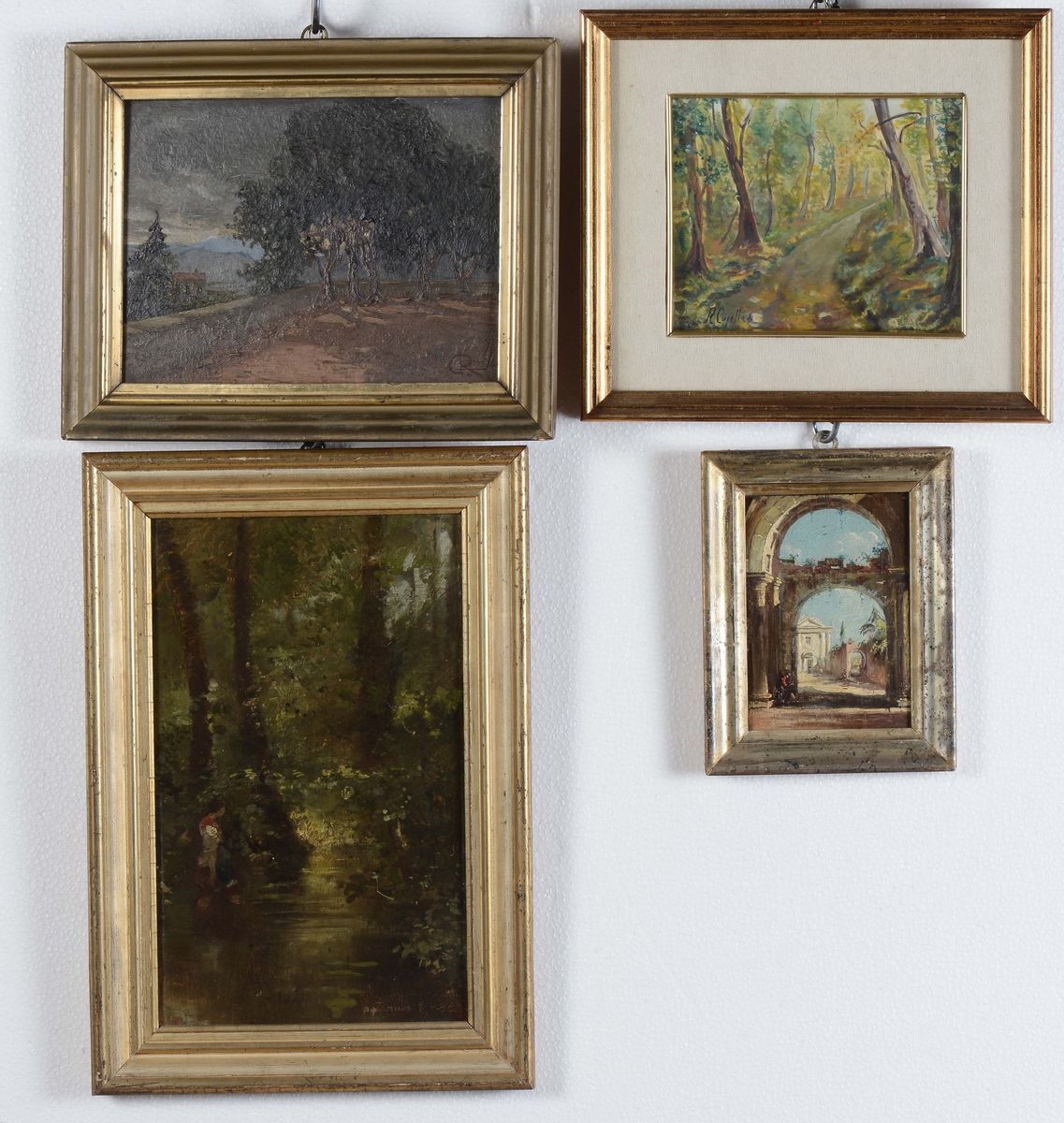 Lotto di quattro dipinti diversi, XIX-XX secolo