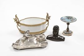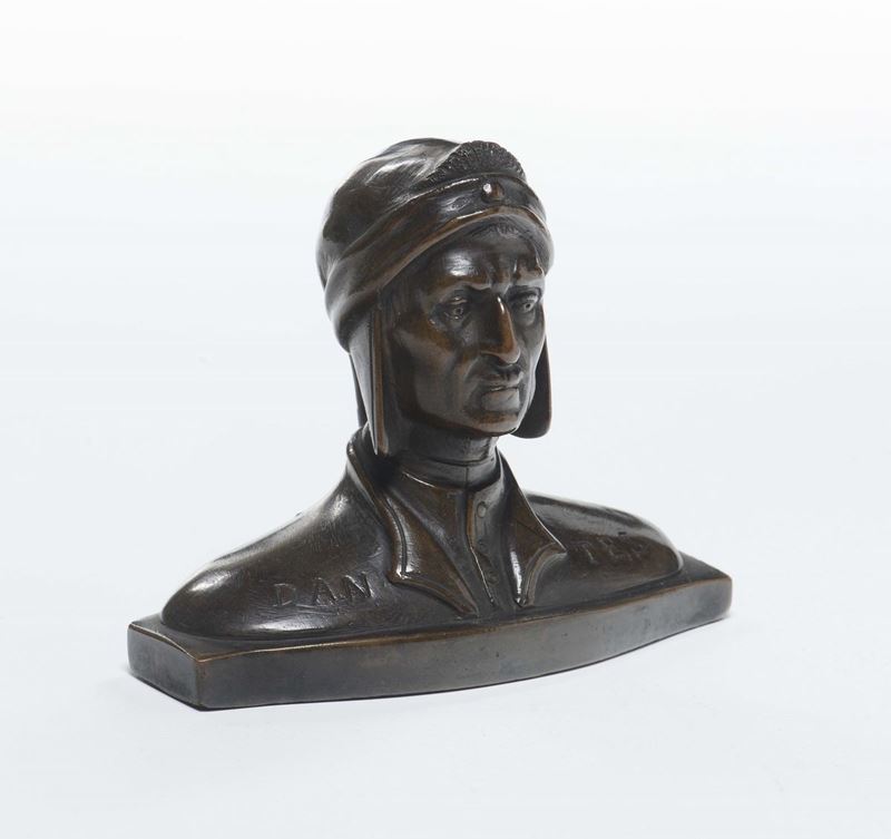 composto da calamaio liberty, alzatina cloisonnè, Dante busto in bronzo e vaschetta in porcellana e bronzo