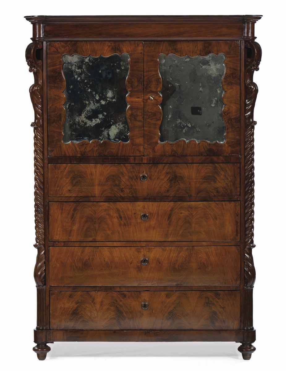 Mobile guardaroba Luigi Filippo con ante a specchi, XIX secolo