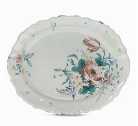 Piatto ovale con decoro alla rosa, Jacques Boselly, Savona XVIII secolo