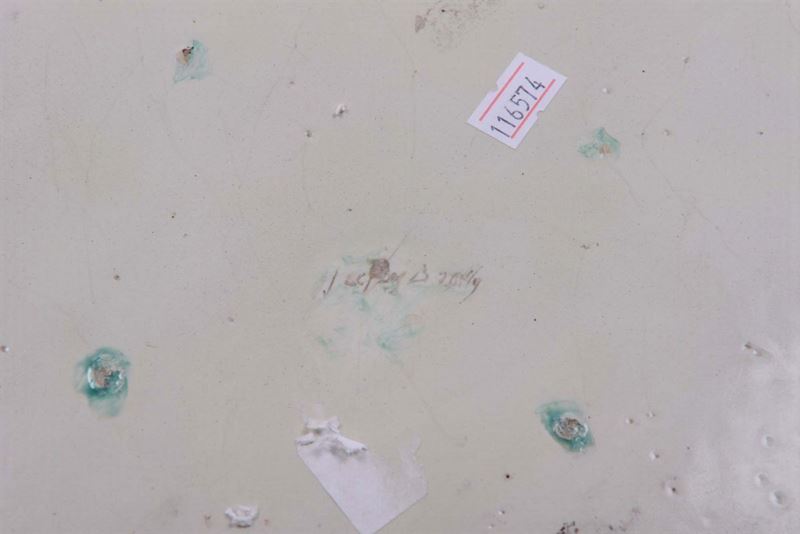 tesa sagomata, marca sotto la base, cm 29x35 (restauri)
