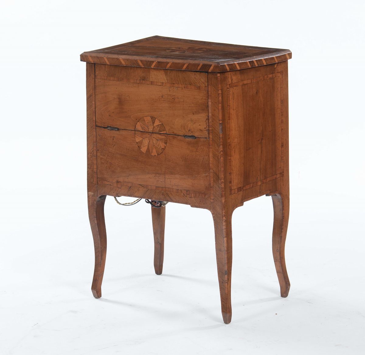 Piccola commode interamente lastronata ed intarsiata, XIX secolo