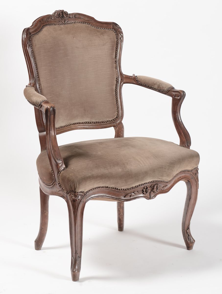Poltrona Luigi XV in noce intagliato, Francia, XVIII secolo