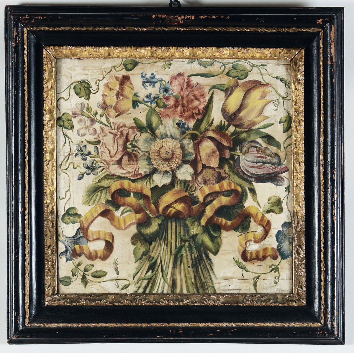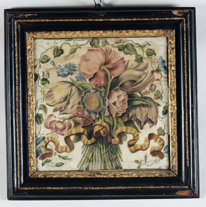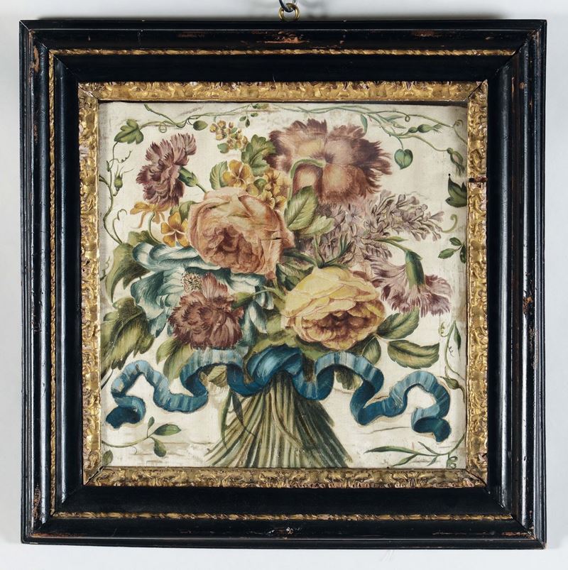 Quattro dipinti su seta raffiguranti mazzi di fiori, XVIII secolo