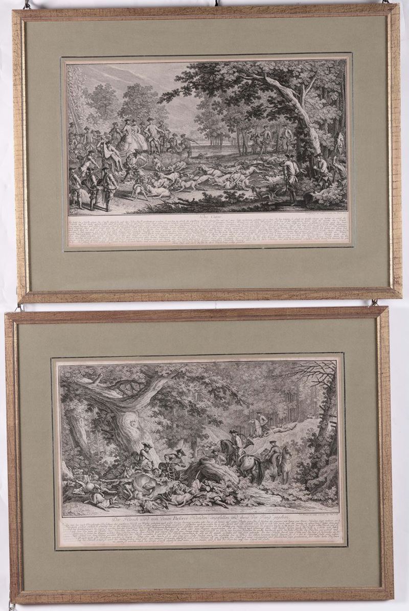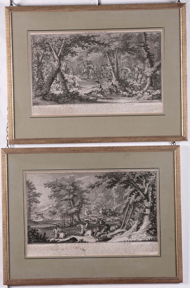 Quattro stampe con scene di caccia, Germania XIX secolo