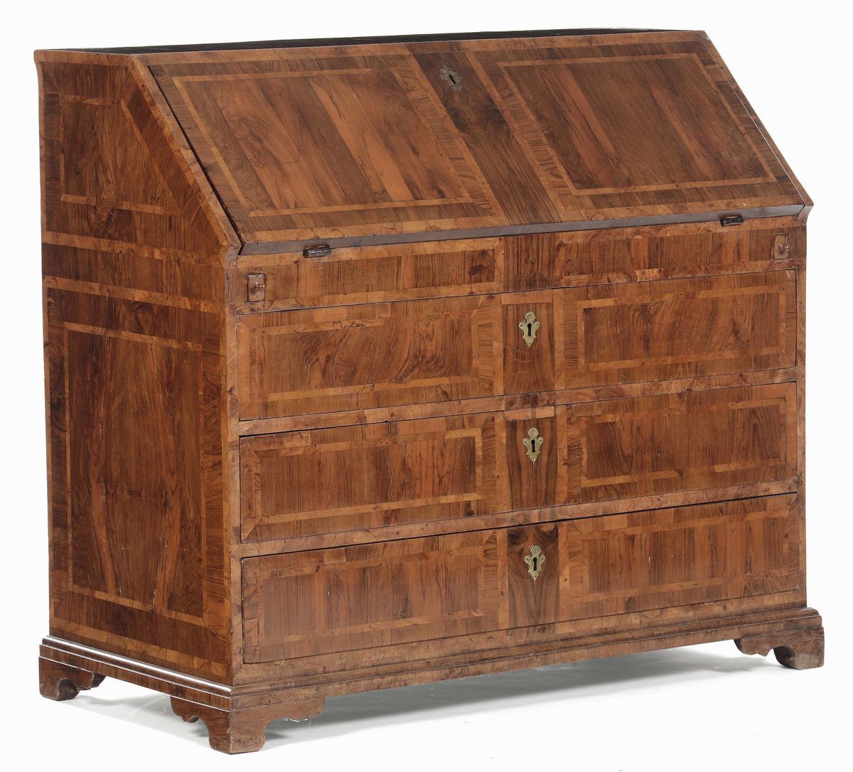 fronte mosso con tre cassetti alla base, calatoia che cela cassettini, vani a giorno e vano segreto, cm 121x62x113