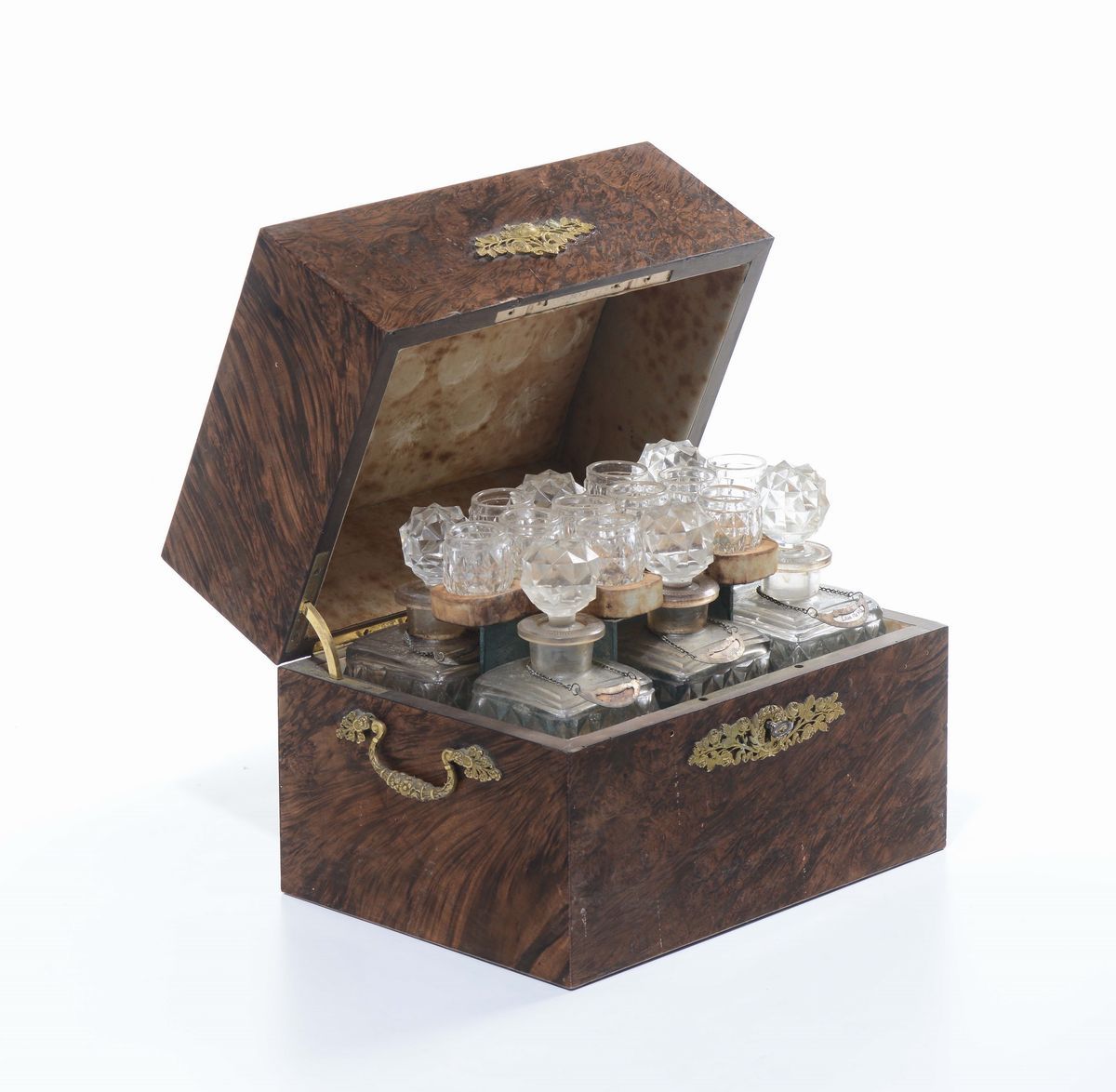 Scatola portaliquori con ampolle in cristallo, XIX secolo