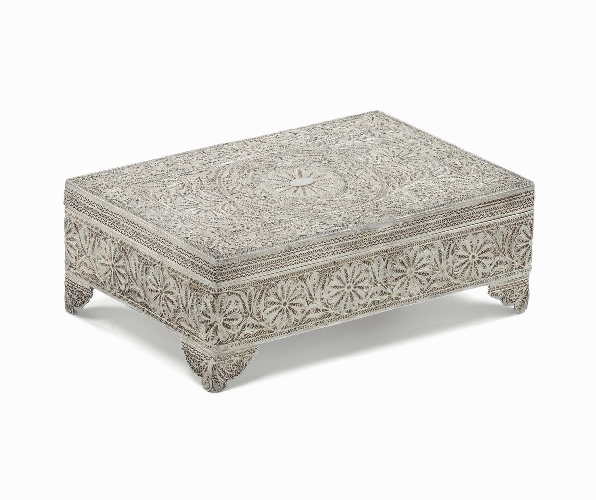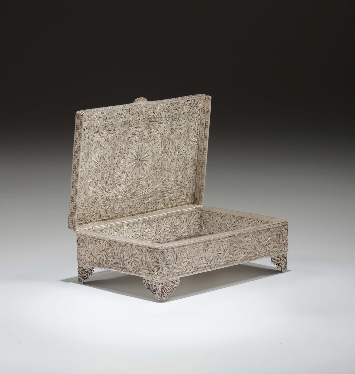 Scatoletta rettangolare in filigrana d'argento, XIX secolo