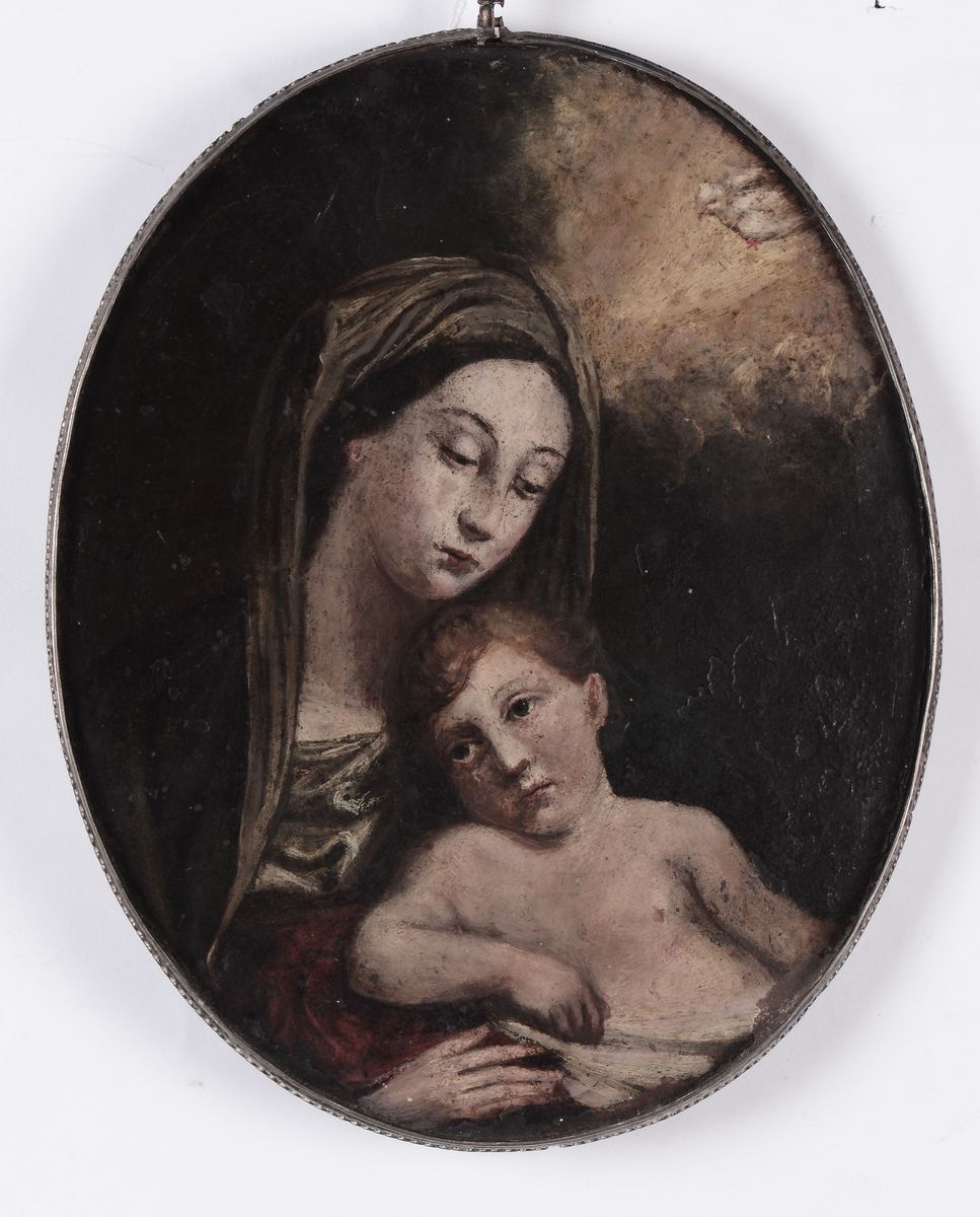 olio su rame ovale, cm 20x16, sul retro Madonna con Bambino