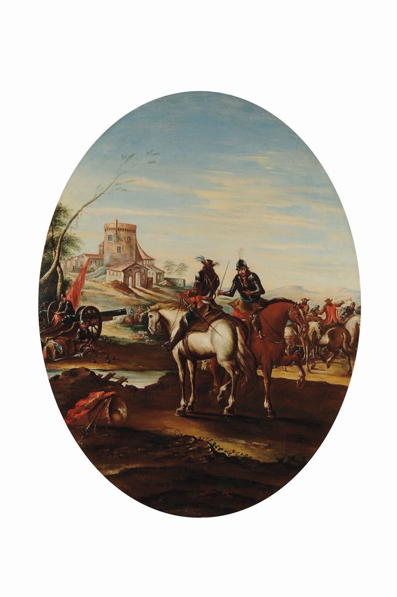 Seguace del XIX-XX secolo Paesaggi con soldati