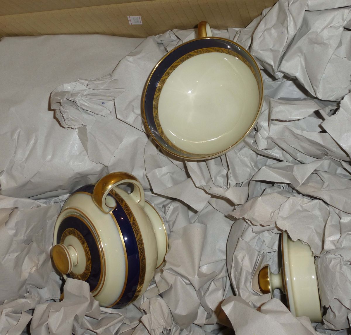Servizio di piatti in porcellana con bordo blu o oro
