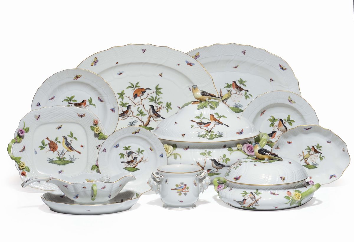 composto da 20 piatti piani, 9 piatti fondi, 8 da frutta, 8 da dolce, 2 zuppiere, 2 vassoi e salsiera