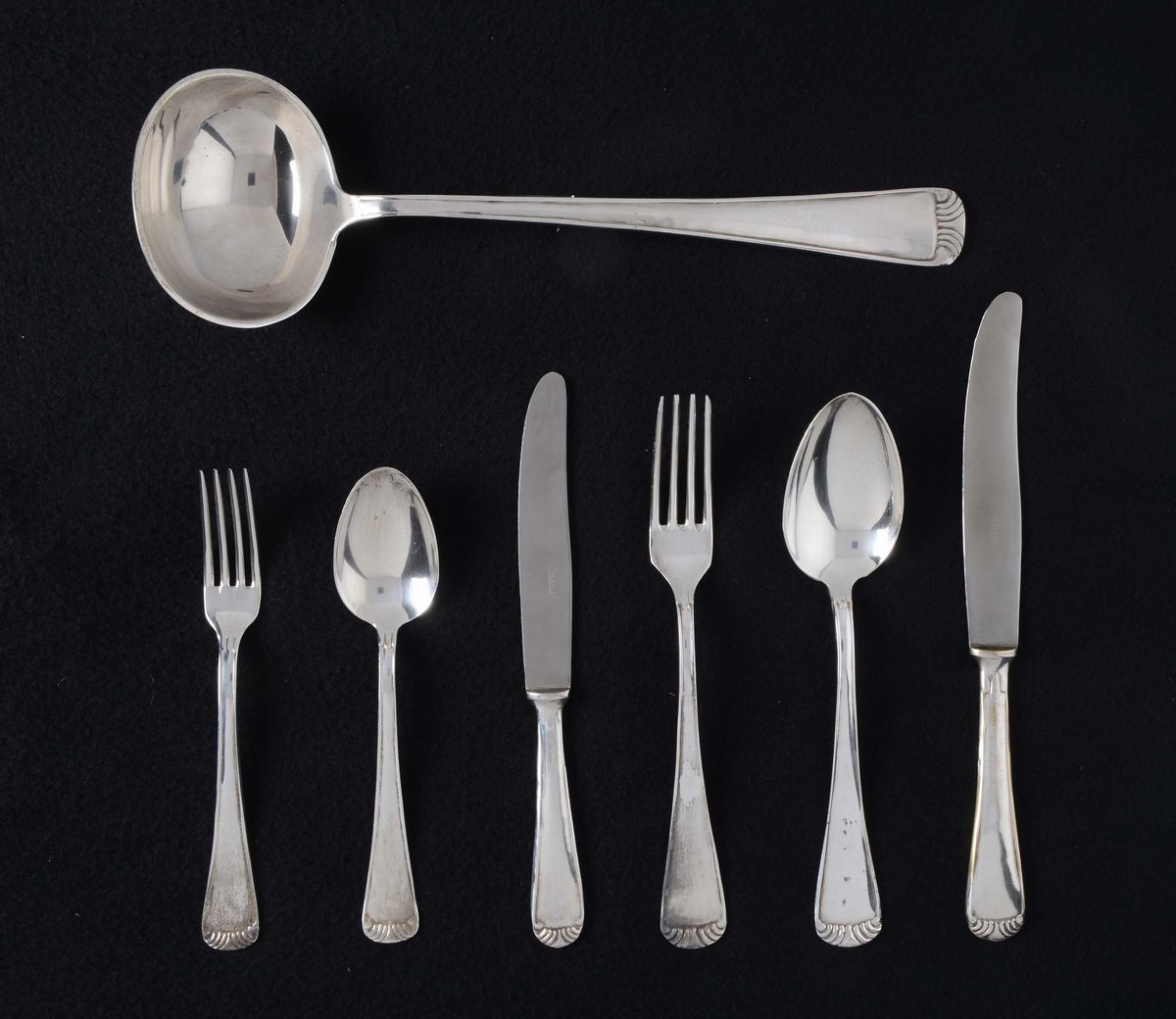 composto da forchette, forchettine, cucchiai, cucchiaini, coltelli e coltelli da frutta e due pezzi di servizio